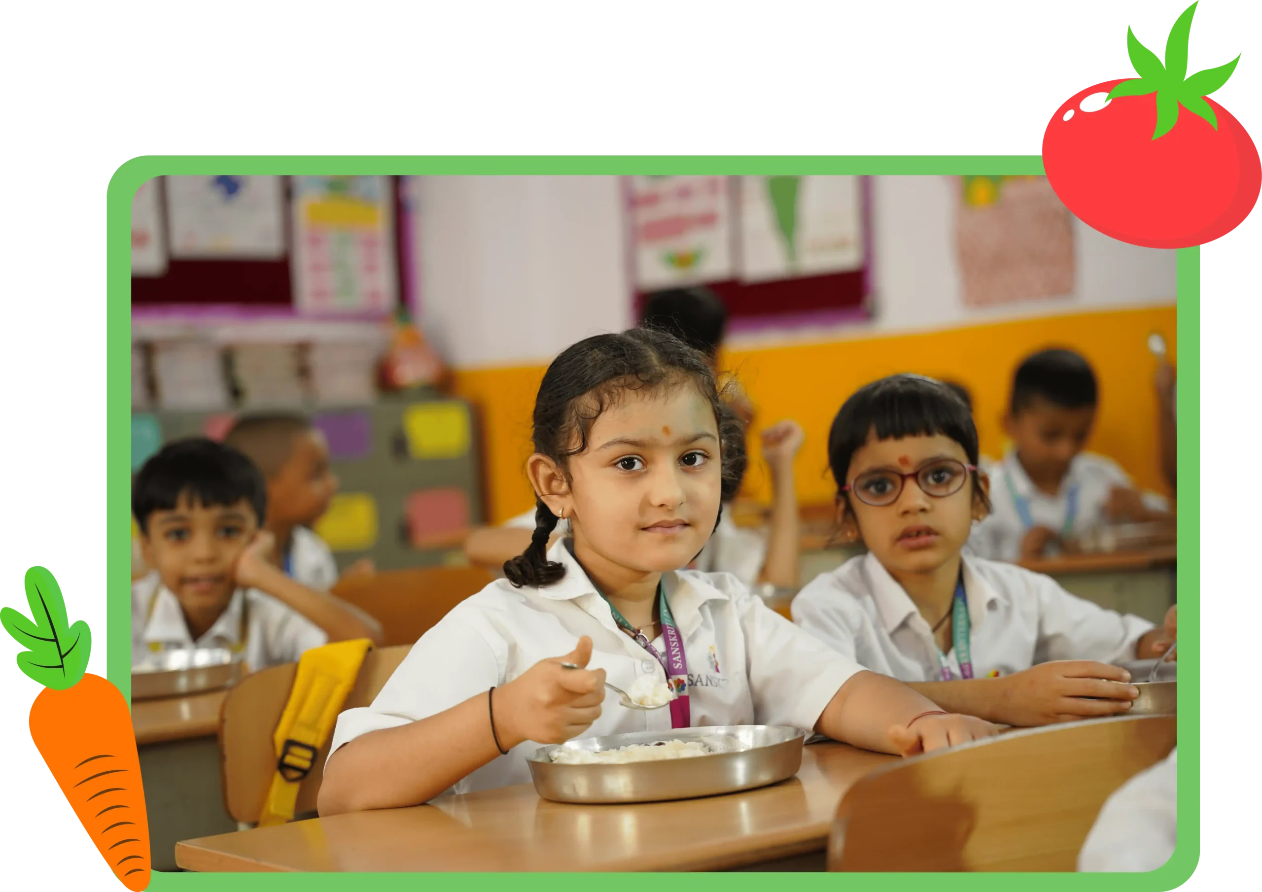 At Sanskriti School, lunch is a moment of community, care, and connection. Every day, students and teachers sit together to share freshly prepared, nutritious meals, reinforcing the values of equality, respect, and togetherness.